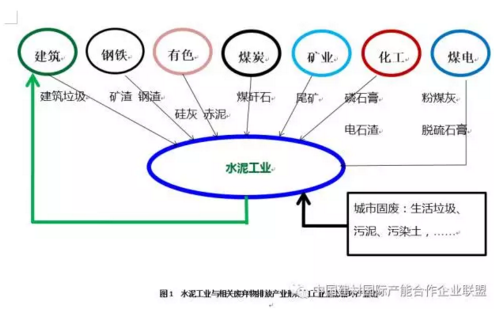 水泥工業(yè)綜合利用工業(yè)固體廢物的歷史悠久。有多少工業(yè)產(chǎn)業(yè)的固廢要依賴水泥工業(yè)和水泥制品產(chǎn)業(yè)安全處置和資源化綜合利用呢?實在太多,筆者無法作全面統(tǒng)計,尤其是各種工業(yè)過程產(chǎn)生的危險廢棄物,但是圖1中所列出的相關(guān)產(chǎn)業(yè)已足夠令人有一個大觀。據(jù)2010年的數(shù)據(jù),水泥工業(yè)固廢利用已占全國固廢利用量的30%左右。一些業(yè)內(nèi)外人士認為水泥工業(yè)利廢是理所當然,其實不然。水泥生產(chǎn)利用可燃廢物,最初是因為國家能源短缺時降低水泥產(chǎn)品生產(chǎn)能耗的需要。水泥熟料生產(chǎn)有著嚴格的生料化學組分設(shè)計、成分波動范圍和熟料產(chǎn)品質(zhì)量控制要求,從系統(tǒng)穩(wěn)定生產(chǎn)和質(zhì)量控制上來說,組分變化或波動較大、所含微量元素不同和濃度高低、廢物性能差異較大的各種工業(yè)固廢的利用,均會對水泥生產(chǎn)過程和產(chǎn)品質(zhì)量帶來影響,需要通過研發(fā),采取相應的技術(shù)措施加以協(xié)同和消除影響??梢哉f,每一種廢棄物的利用都必須研發(fā)相應的控制技術(shù),水泥工業(yè)的環(huán)保功能是建立在科技創(chuàng)新的基礎(chǔ)之上。
