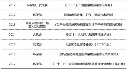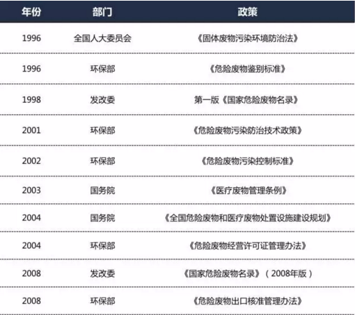 近年來危廢相關(guān)法規(guī)政策