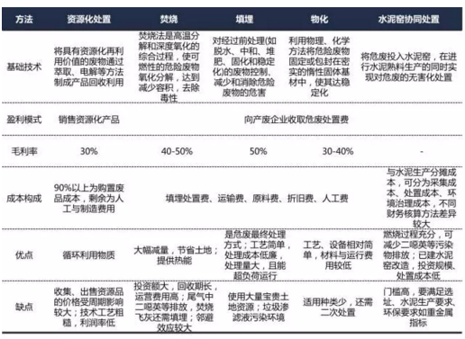 危廢處理方法主要有資源化、無害化兩類
