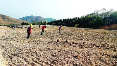 工人正在完成封場的沖口生活垃圾衛(wèi)生填埋場松土和播撒草籽。記者譚熙攝