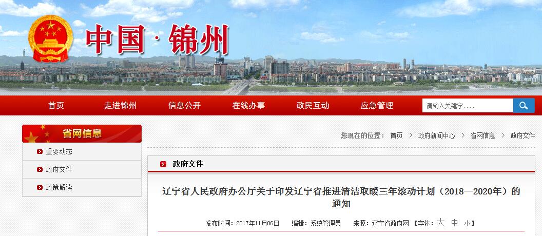 遼寧省推進(jìn)全省清潔取暖三年滾動(dòng)計(jì)劃
