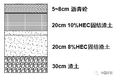 根據(jù)劉勇先生介紹,在上海世博會(huì)項(xiàng)目中,傲江公司主要提供HEC高強(qiáng)高耐水土體固結(jié)劑,用于固結(jié)一般土體、特殊土體、砂石集料和工業(yè)廢渣。在世博園區(qū)內(nèi)的施工便道中應(yīng)用,便道長(zhǎng)度3km。路面結(jié)構(gòu)為二層8~10%HEC固結(jié)土(40cm),上面直接鋪設(shè)5~8cm瀝青砼面層,開(kāi)放交通供上鋼三廠的重型卡車行駛,效果良好。