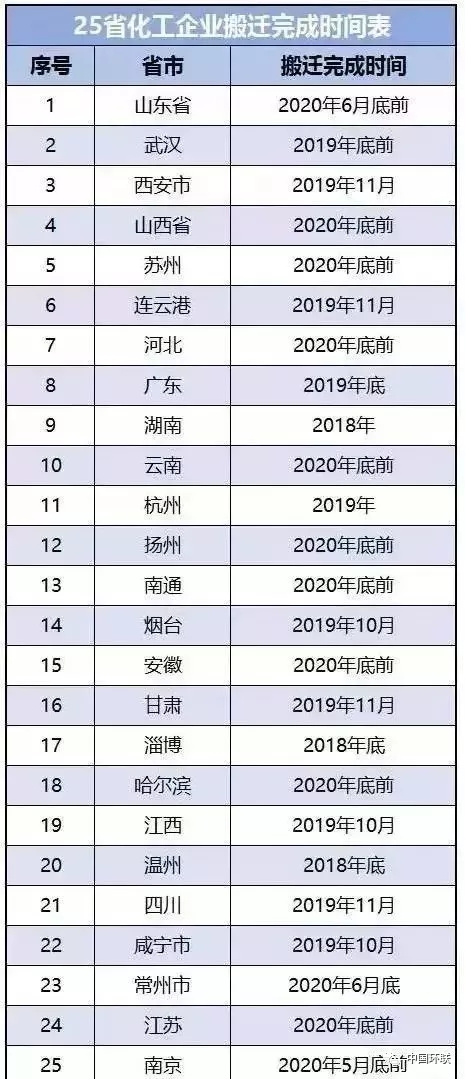 25省市發(fā)布化工企業(yè)搬遷最后時(shí)間表