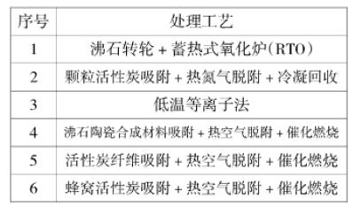針對船舶涂裝的特點,適用于船舶涂裝VOCs處理工藝主要有六種(如表1)。