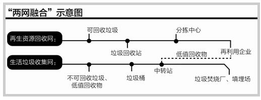 對(duì)此,廣州開(kāi)始進(jìn)行制度創(chuàng)新,開(kāi)創(chuàng)性的打造出一個(gè)城市生活垃圾收集網(wǎng)和再生資源回收網(wǎng)跨網(wǎng)的“兩網(wǎng)融合”體系。