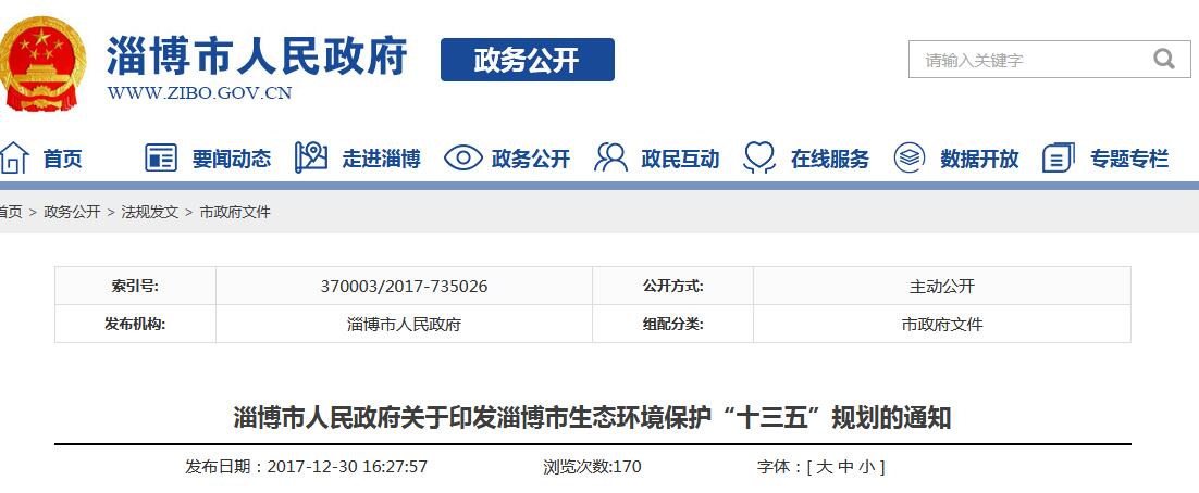 淄博市生態(tài)環(huán)境保護(hù)“十三五”規(guī)劃