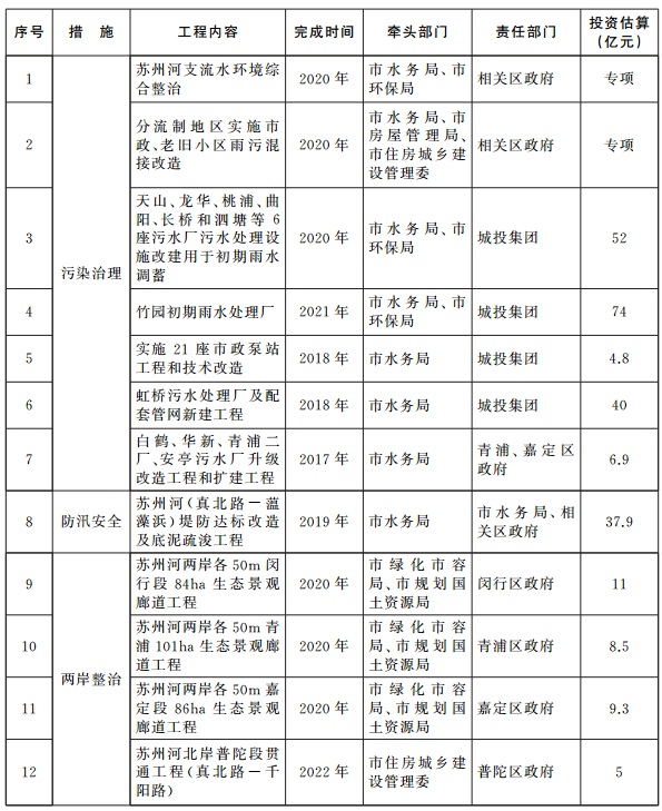 附件:蘇州河環(huán)境綜合整治四期工程任務(wù)表