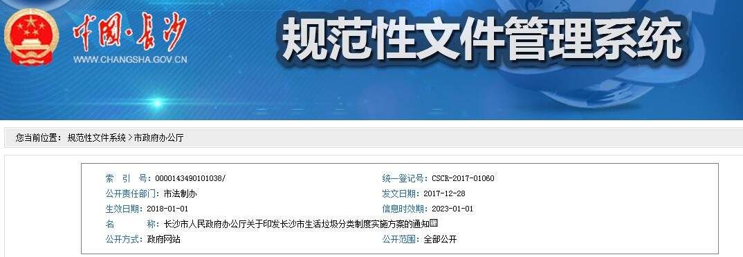 《長沙市生活垃圾分類制度實施方案》已經市人民政府同意,現印發(fā)給你們,請認真遵照執(zhí)行。