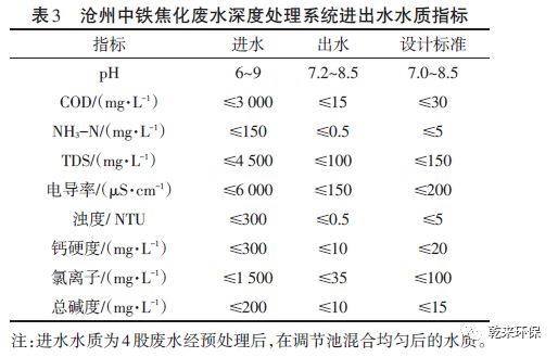 2.3.3 處理效果系統(tǒng)自2016年6月全線通水,已平穩(wěn)運(yùn)行6個(gè)多月,回用水水質(zhì)完全達(dá)到業(yè)主規(guī)定的設(shè)計(jì)標(biāo)準(zhǔn)。焦化廢水深度處理系統(tǒng)主要控制的9 項(xiàng)進(jìn)出水水質(zhì)指標(biāo)如表3所示。