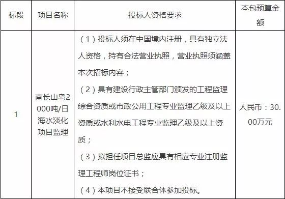 一、采購項(xiàng)目名稱:南長(zhǎng)山島2000噸/日海水淡化項(xiàng)目監(jiān)理