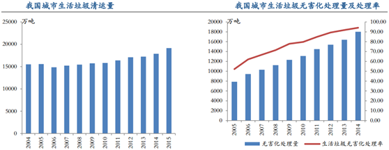 智通財(cái)經(jīng)APP了解到,2015年全國城市生活垃圾清運(yùn)量為1.92億噸,過去十年的年均復(fù)合增長率為2.11%;其中城市生活垃圾的無害化處理率由2005年的52%提高至2015年的94%,復(fù)合增長率達(dá)到8.38%。但是市轄區(qū)農(nóng)村部分的無害化處理率僅為62.02%,且人均生活垃圾清運(yùn)量已經(jīng)達(dá)到1.12千克,處于較高水平,垃圾處理的需求仍有較大空間。