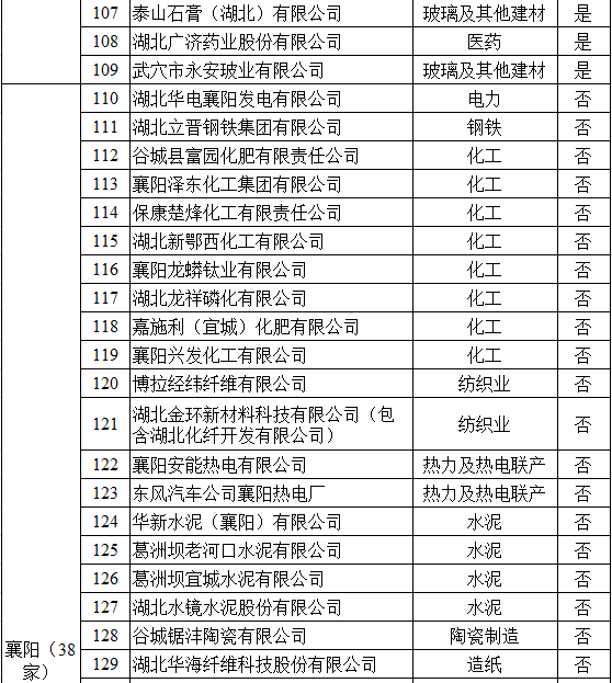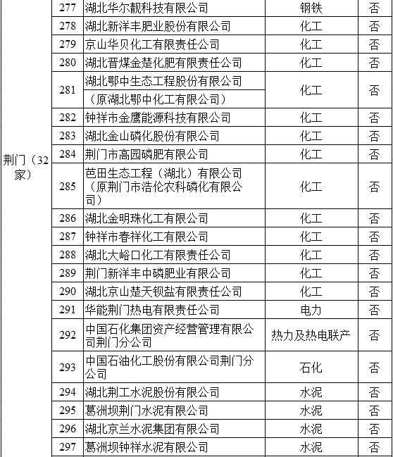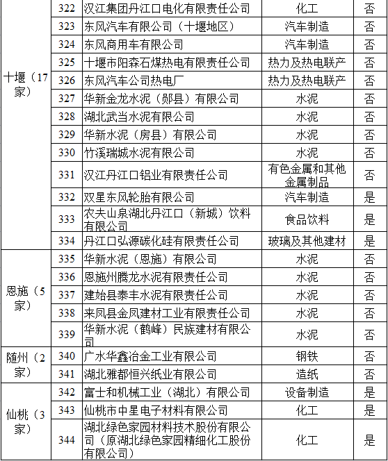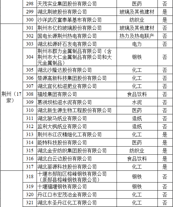 湖北省2017年納入碳排放配額管理企業(yè)清單