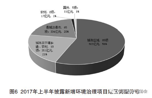 PPP模式做為我國新型城鎮(zhèn)化建設(shè)的重要工具,一方面為社會資本參與城鎮(zhèn)環(huán)境治理提供了渠道,另一方面解決了中小城鎮(zhèn)政府財政支付能力不足的問題,成為目前中小城鎮(zhèn)實施環(huán)境治理項目的主要模式。2017年上半年65個中小城鎮(zhèn)環(huán)保項目中,36個為PPP模式項目,總投資285億元,投資額占比達(dá)80%。除流域治理等綜合服務(wù)項目外,許多污水處理廠、垃圾焚燒發(fā)電項目等單體項目也普遍采用了PPP模式(見圖6)。