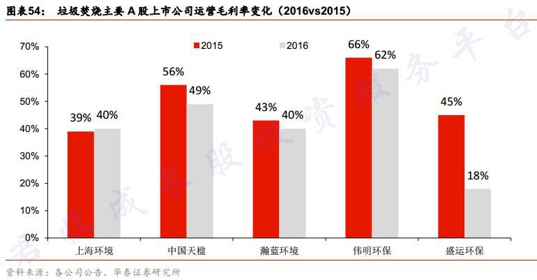 2 首先看看幾家公司在固廢處理板塊的毛利率情況。