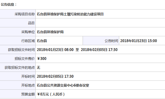 安徽省池州市石臺(tái)縣發(fā)布環(huán)境保護(hù)局土壤污染防治能力建設(shè)項(xiàng)目STZF2017191A招標(biāo)公告,以下是全文: