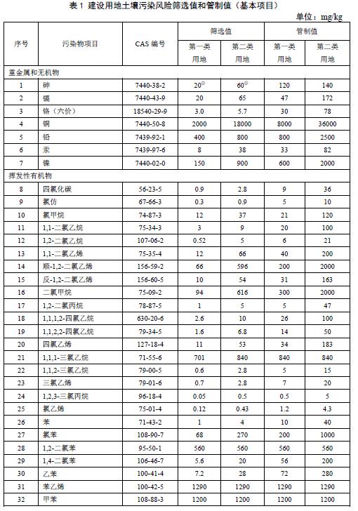 建設(shè)用地土壤污染風(fēng)險管控標(biāo)準(zhǔn)
