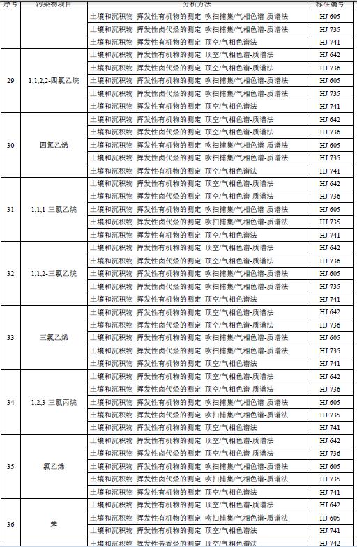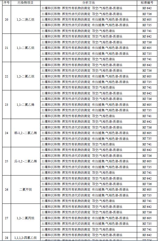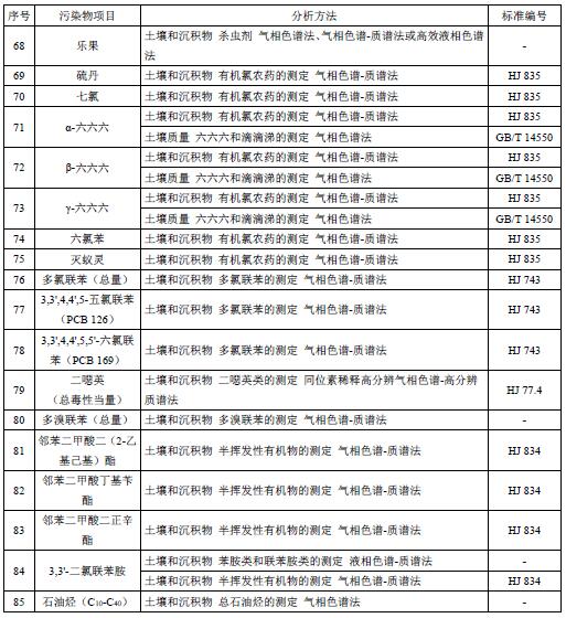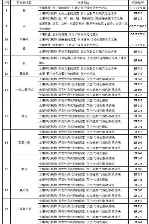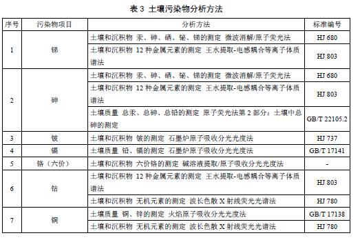 6.2土壤污染物分析方法按表3執(zhí)行。暫未制定分析方法標(biāo)準(zhǔn)的污染物項(xiàng)目,待相應(yīng)分析方法標(biāo)準(zhǔn)發(fā)布后實(shí)施。