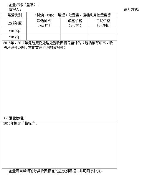 各經營單位須按照附表1格式要求,如實填報2016、2017年危險廢物處理處置收費情況,并通過核算企業(yè)處置成本,評估分析2016年、2017年經營價格,預報2018年經營價格。于2018年2月7日之前報送上海市環(huán)保局,并抄送上海市固體廢物管理中心。