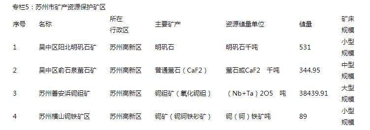 專欄5:蘇州市礦產(chǎn)資源保護(hù)礦區(qū)