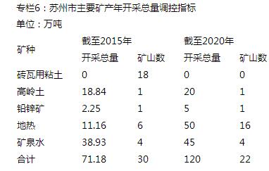 專欄6:蘇州市主要礦產(chǎn)年開采總量調(diào)控指標(biāo)