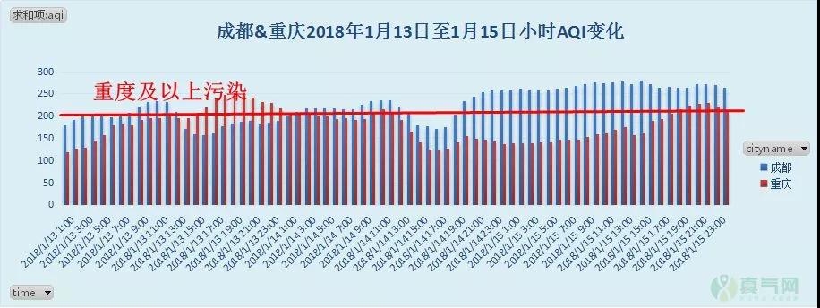 1月13日至1月15日,在不利氣象條件影響下,成都、重慶分別經(jīng)歷了50小時(shí)和25小時(shí)的重度及以上污染過(guò)程。