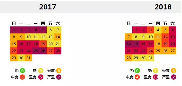 從污染日歷來(lái)看,今年1月份也并未比去年有多少改善。