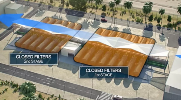 這個(gè)新的海水淡化廠建在一個(gè)現(xiàn)有反滲透海水淡化廠旁邊,占地面積約17.5公頃。太陽(yáng)能面板組將安裝在距離海水淡化廠1公里以外90公頃的土地上。