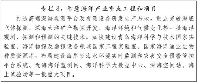 ?。ㄎ澹┈F(xiàn)代海洋產(chǎn)業(yè)。拓展海洋智能信息化及海洋服務(wù)業(yè)發(fā)展新空間,培育一批前瞻性產(chǎn)業(yè),構(gòu)建低消耗、低污染、高收益的現(xiàn)代海洋產(chǎn)業(yè)體系,鞏固擴大走在全國前列的優(yōu)勢地位。