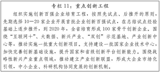 3.競爭優(yōu)勢大幅增強。到2020年,培育形成100家以上創(chuàng)新型骨干企業(yè),壯大一批機制靈活、創(chuàng)新突出的中小微企業(yè),打造一批技術(shù)含量高、核心競爭力強、特色優(yōu)勢明顯的產(chǎn)業(yè)鏈和產(chǎn)業(yè)集群,參與國內(nèi)外分工的層次不斷提高,部分重要領(lǐng)域由跟跑、并跑向領(lǐng)跑轉(zhuǎn)變。