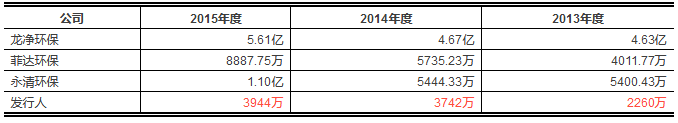 再看看發(fā)行人的盈利水平,2013、2014、2015年度分別為2260萬、3742萬、3944萬,對比同行業(yè)上市公司龍凈環(huán)保、菲達(dá)環(huán)保、永清環(huán)保同時期的凈利潤水平,發(fā)行人明顯偏小,因此調(diào)節(jié)銷售費(fèi)用的質(zhì)疑就不難理解了。
