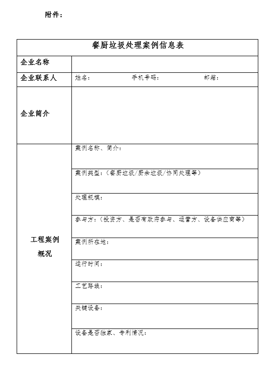 附件:餐廚垃圾處理案例信息表