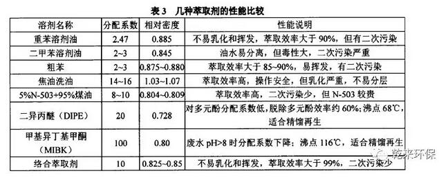 幾種脫酚萃取劑性能對比,見下表3所示。