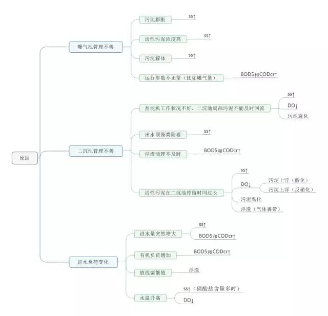 解決辦法:增加負荷均衡營養(yǎng),提高水溫,改善污泥生長環(huán)境。