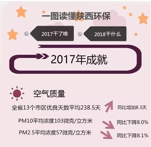 陜西省2017年環(huán)保都做了些什么?大氣污染治理、水環(huán)境治理、環(huán)保督察等方面取得了哪些成果?2018年目標(biāo)為何?下圖帶你讀懂陜西環(huán)保2017年成果與2018年目標(biāo)。