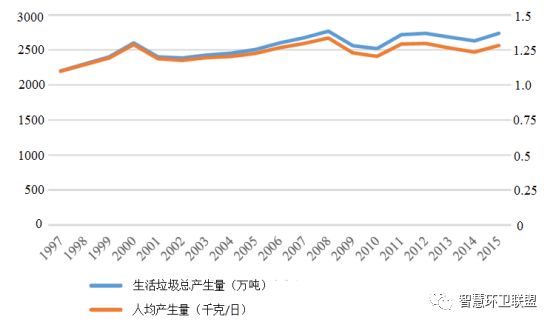 圖2. 芬蘭生活垃圾產生量及人均產生量的變化趨勢
