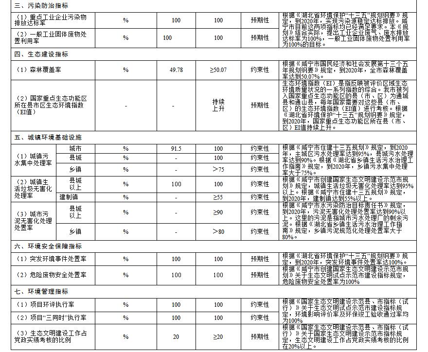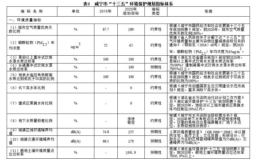 根據(jù)國家、省環(huán)境保護“十三五”規(guī)劃相關(guān)要求,結(jié)合咸寧實際情況,“十三五”期間環(huán)保規(guī)劃指標(biāo)如下。