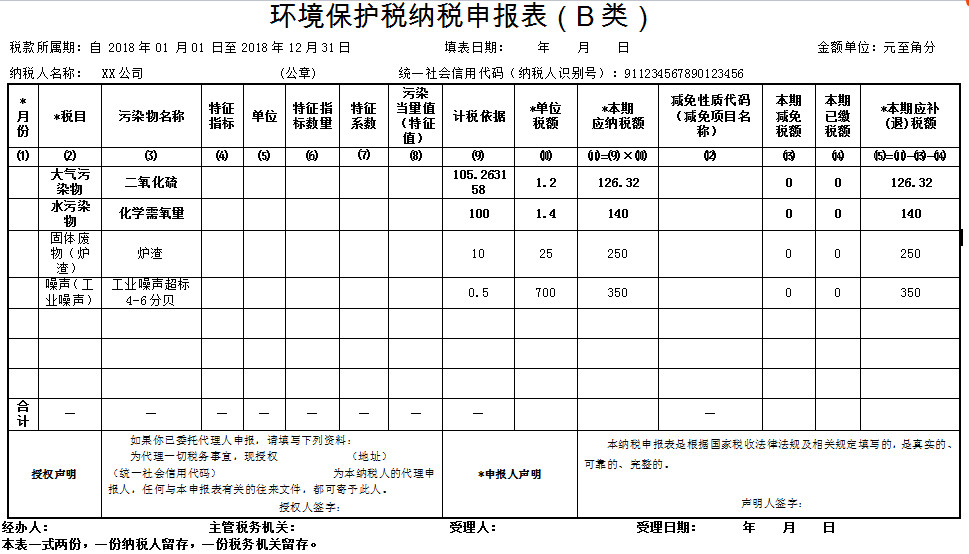2. 環(huán)境保護(hù)納稅申報計算表(附表一)(大氣污染物適用):適用于污染物為大氣污染的申報計算。