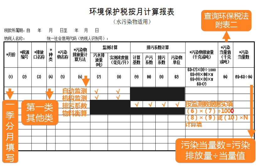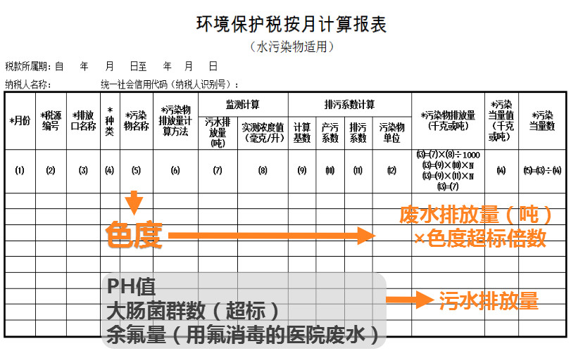 3. 環(huán)境保護(hù)納稅申報計算表(附表二)(水污染物適用):適用于污染物為水污染的申報計算。