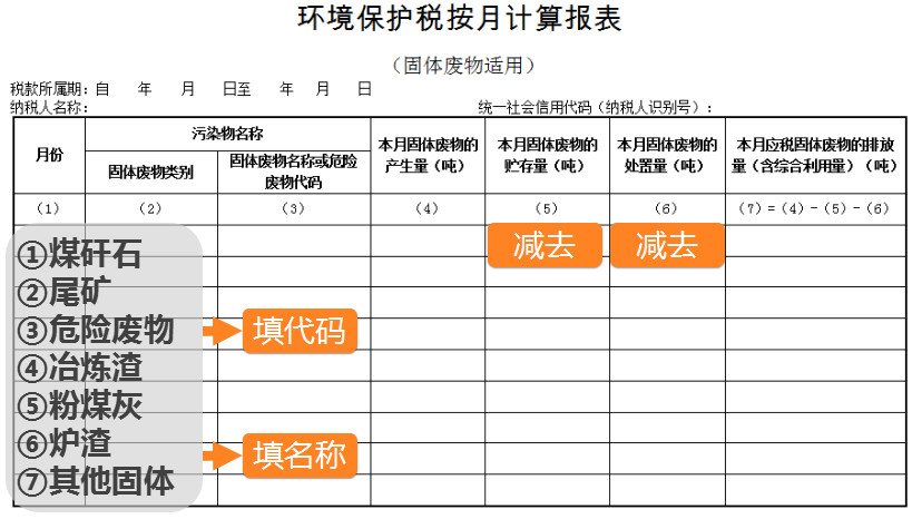 4. 環(huán)境保護(hù)納稅申報計算表(附表三)(固體廢物適用):適用于污染物為固體廢物的申報計算。