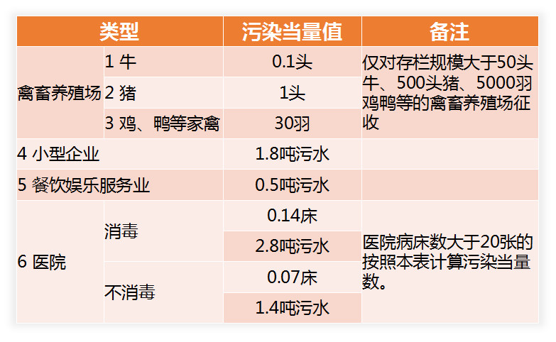 (本表僅適用于計算無法進(jìn)行實際檢測或者物料衡算的禽畜養(yǎng)殖業(yè)、小型企業(yè)和第三產(chǎn)業(yè)等小型排污者的水污染當(dāng)量數(shù))
