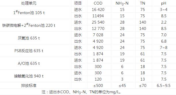 表2各單元處理效果及排放標(biāo)準(zhǔn)