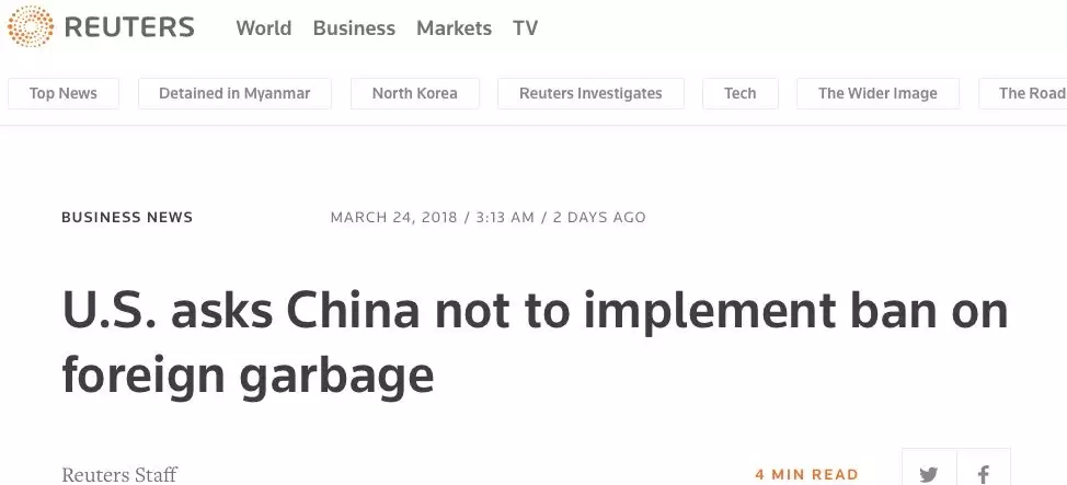 在3月26日外交部例行記者會(huì)上,有記者問(wèn)及:據(jù)報(bào)道,美國(guó)官員23日在世貿(mào)組織貨物貿(mào)易理事會(huì)對(duì)中國(guó)決定停止接收“洋垃圾”表示關(guān)切,并稱中國(guó)限制進(jìn)口可再利用商品嚴(yán)重干擾了全球廢舊物資供應(yīng)鏈。中國(guó)似乎正在違反WTO義務(wù),區(qū)別對(duì)待國(guó)內(nèi)和國(guó)外垃圾產(chǎn)業(yè)并采取過(guò)度貿(mào)易限制政策。美方要求中方立即停止實(shí)施有關(guān)措施。中方對(duì)此有何回應(yīng)?