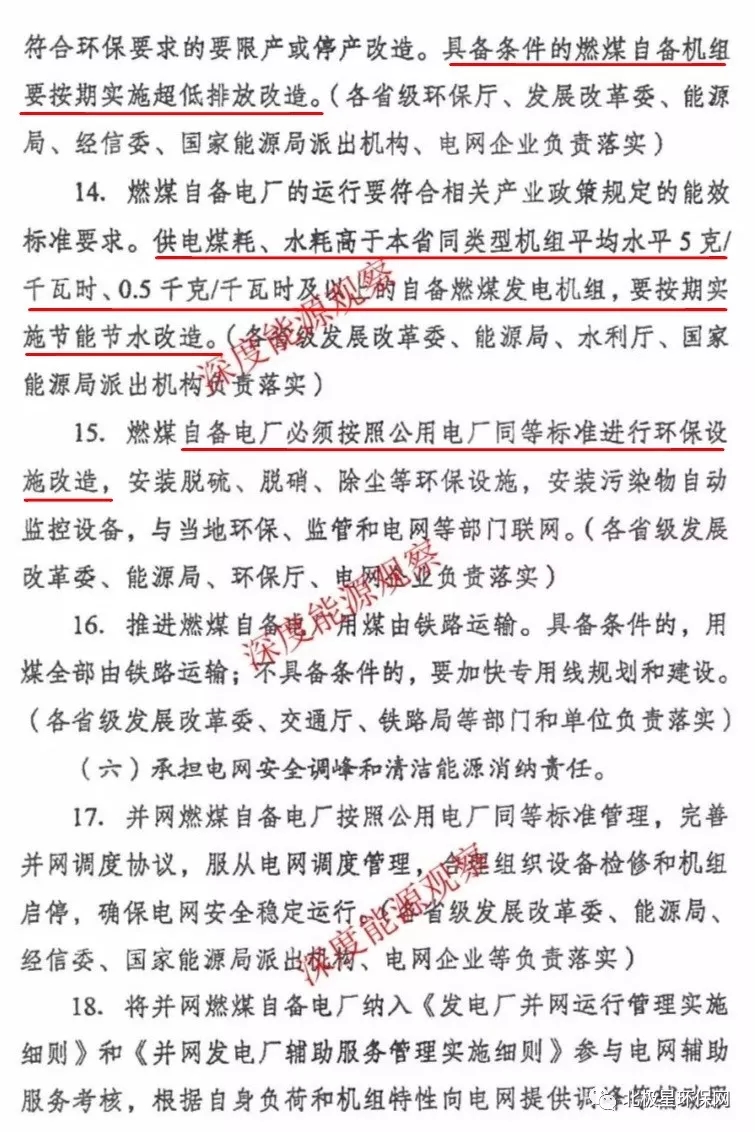 燃煤自備電廠執(zhí)行國家、地方對公用燃煤電廠的最新標(biāo)準(zhǔn),按期實施超低排放改造。供電煤耗、水耗高于本省同類機(jī)組平均水平5克/千瓦時、0.5千克/千瓦時及以上的自備燃煤發(fā)電機(jī)組,按期實施節(jié)能節(jié)水改造。