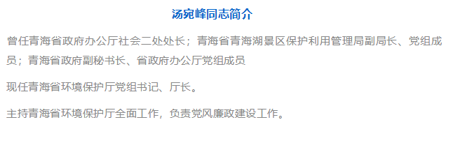 湯宛峰 任青海省環(huán)境保護(hù)廳廳長(zhǎng)