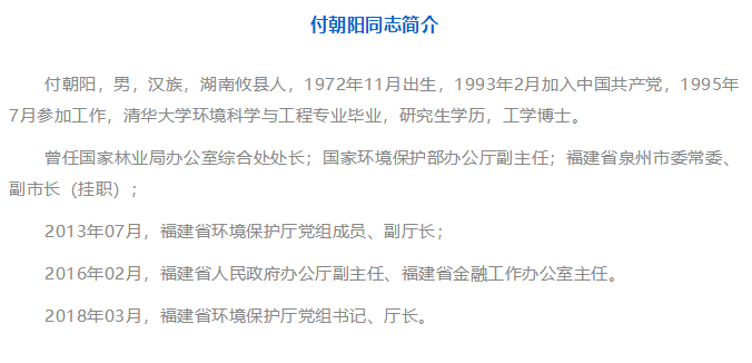 付朝陽 任福建省環(huán)境保護(hù)廳廳長(zhǎng)