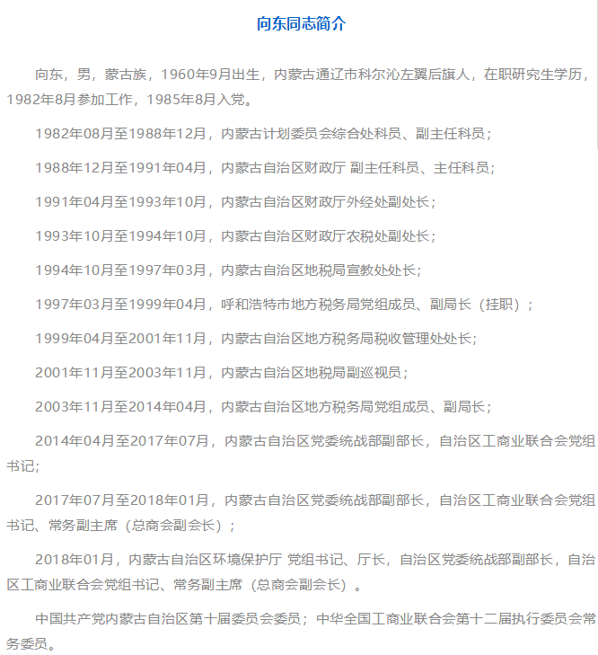 向東 任內(nèi)蒙古自治區(qū)環(huán)保廳廳長(zhǎng)