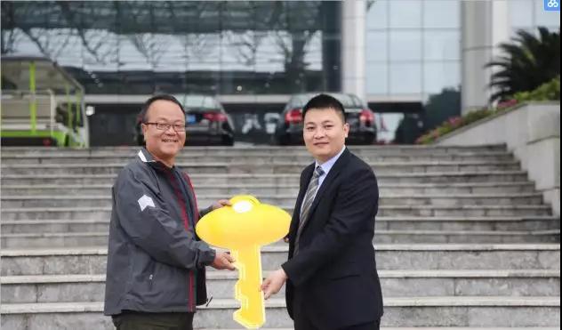 ▲中聯(lián)環(huán)境人力資源總監(jiān)虞小躍致辭,并將金鑰匙交付給客戶(hù)