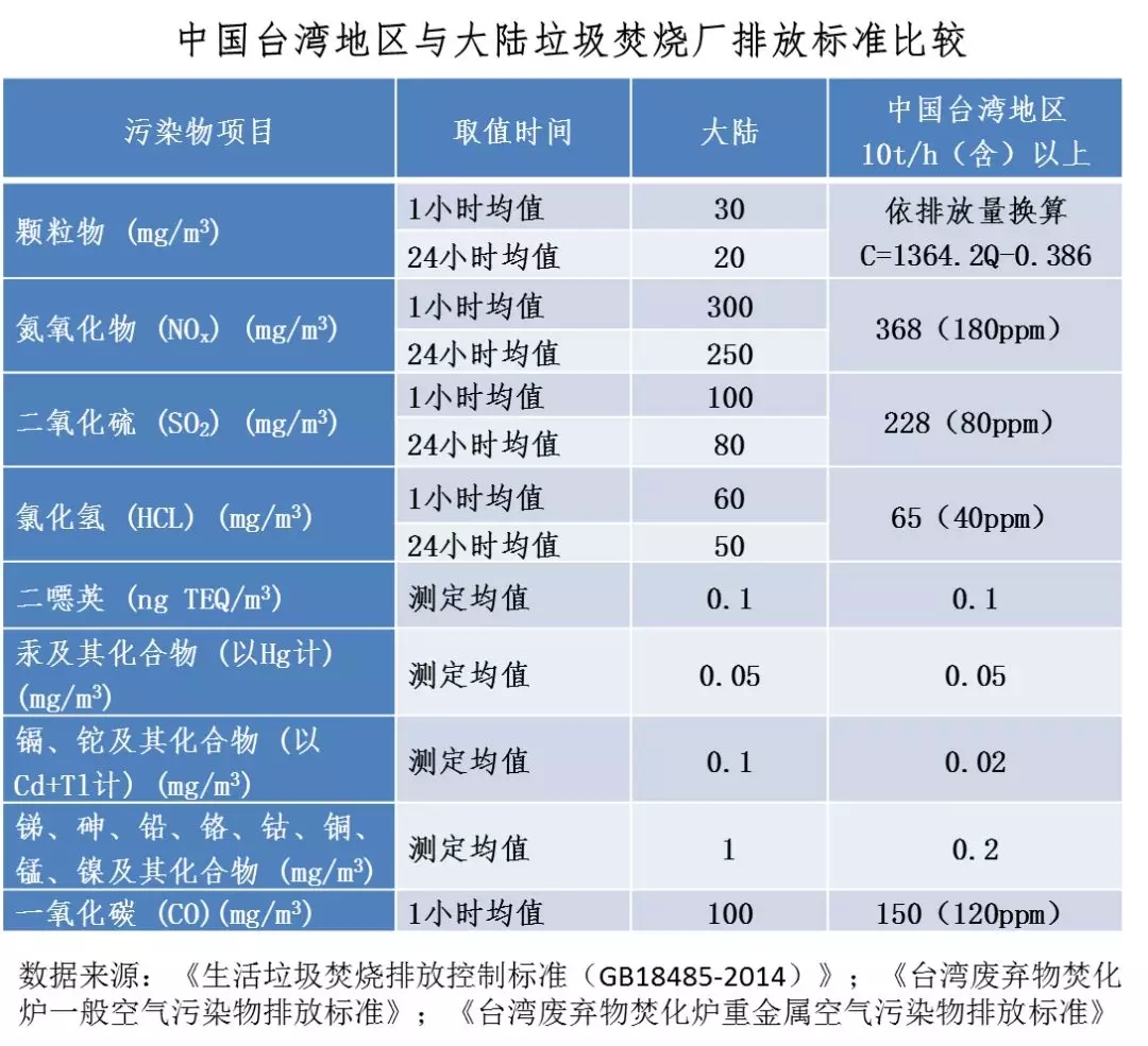 1、臺(tái)灣垃圾焚燒廠的排放標(biāo)準(zhǔn)