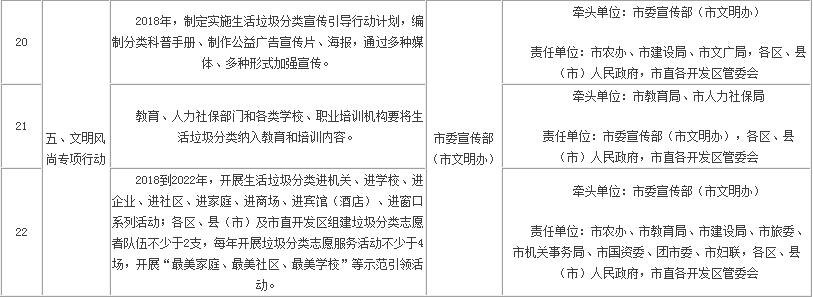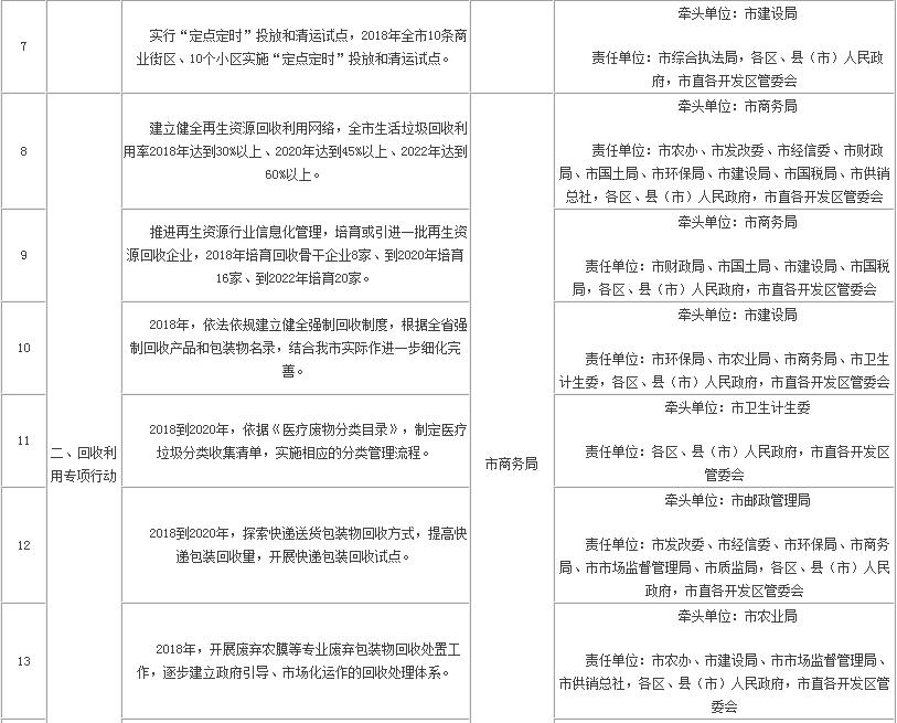 紹興市生活垃圾分類五大專項行動責任分解表