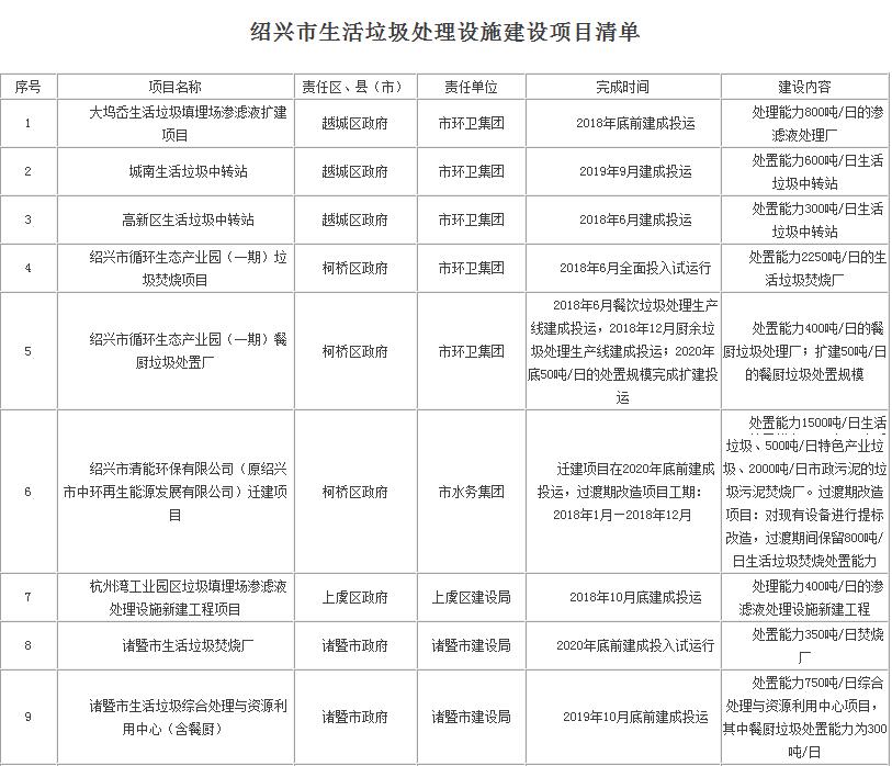2.紹興市生活垃圾處理設(shè)施建設(shè)項目清單